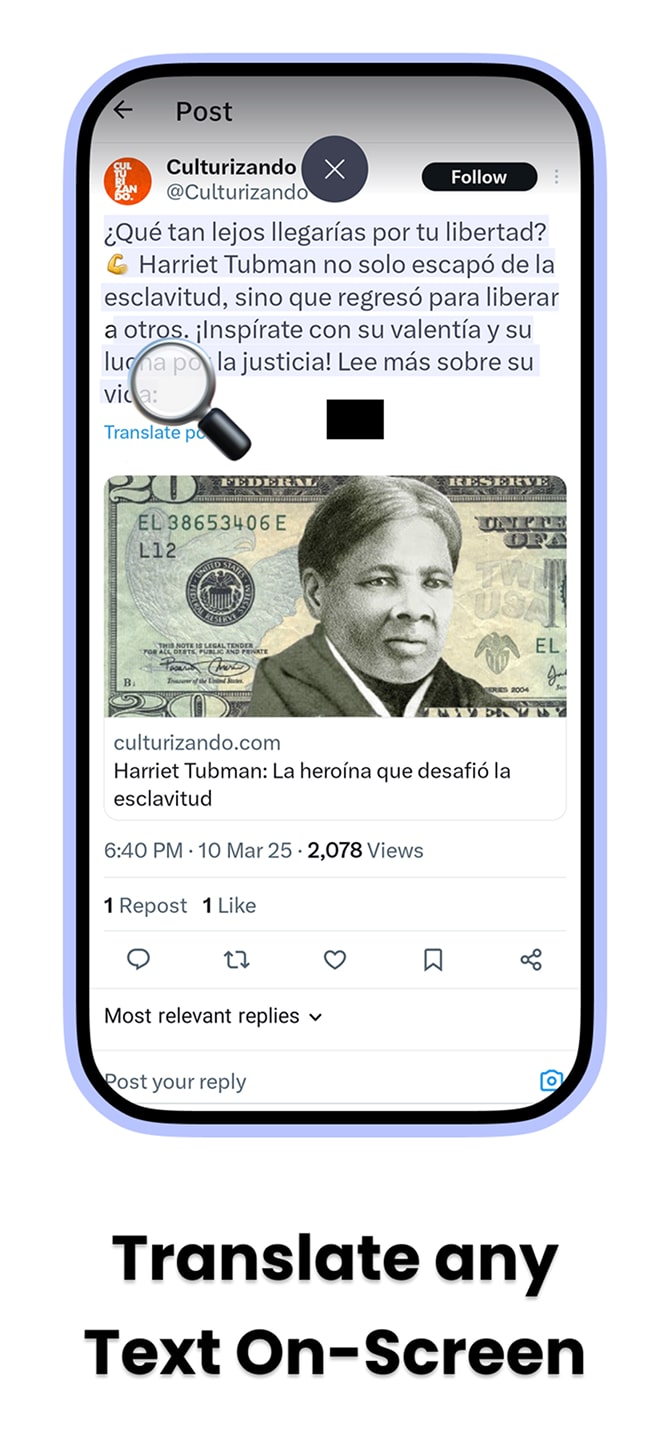 Powerful language learning tools that work across all your favorite apps on your phone!
